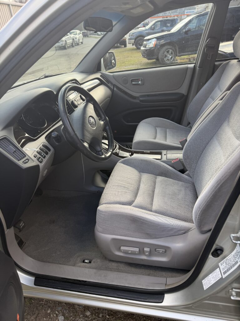 This 2003 Toyota Highlander V6 is a dependable midsize SUV designed to accommodate five passengers. It features a 3.0L V6 engine producing 220 horsepower, paired with a 4-speed automatic transmission and front-wheel drive. The vehicle is recognized for its smooth ride quality and car-like handling. It provides a comfortable cabin with ample space for both passengers and cargo. This SUV is well-maintained, with clean interior and exterior, nearly new tires, and includes a trailer hitch suitable for weekend trips. Prospective buyers are invited to schedule a test drive at their convenience.